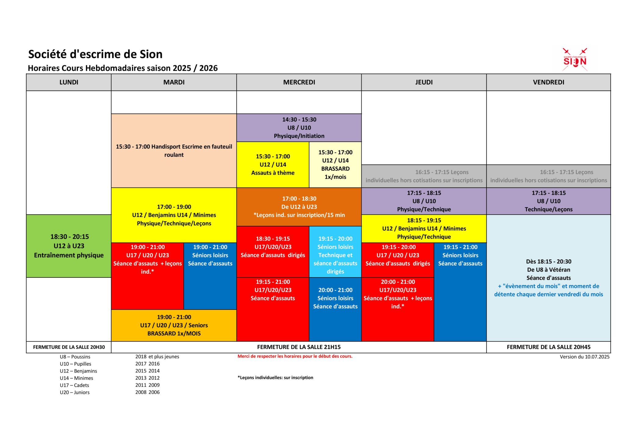 Horaires des cours